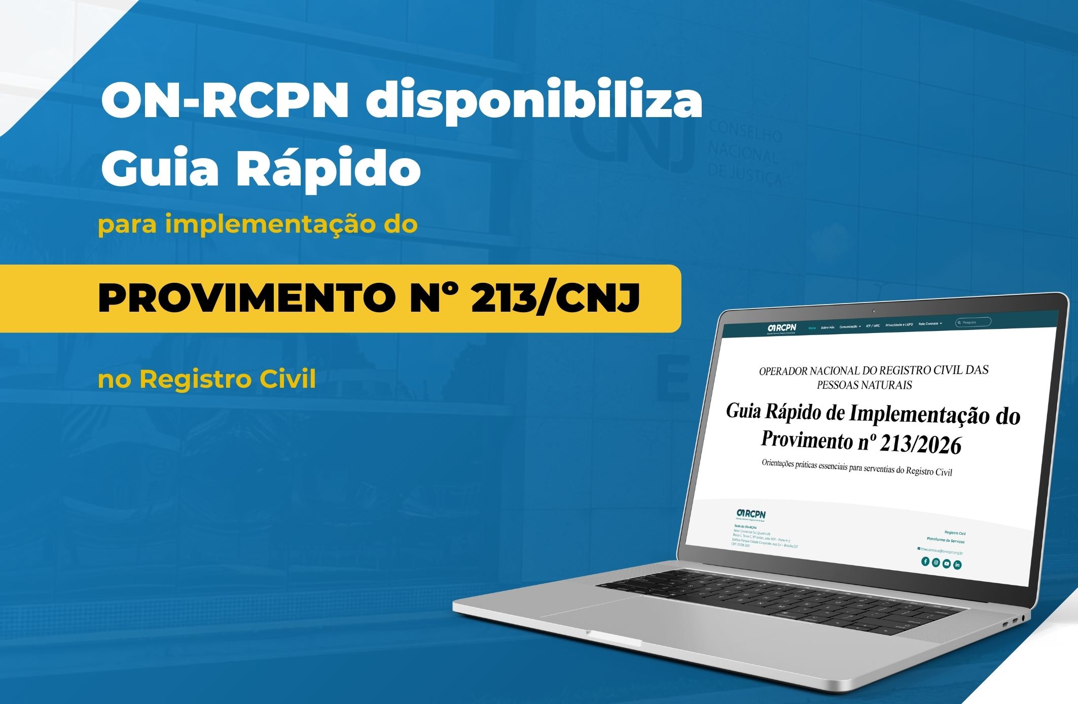O ON-RCPN disponibilizou um Guia Rápido para implementação do Provimento nº 213/2026, com orientações práticas voltadas aos registradores civis de...