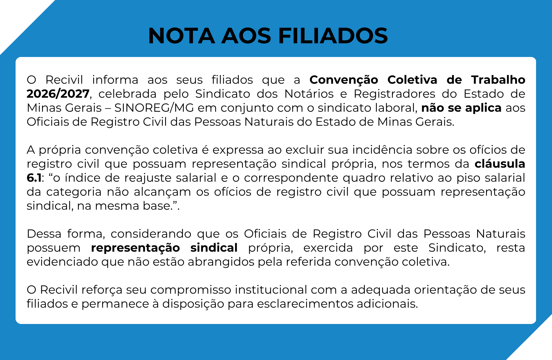 Diante da tragédia que assola a Zona da Mata mineira, o Recivil (Sindicato dos Oficiais de Registro Civil das Pessoas...