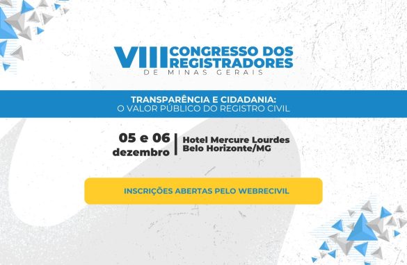 Inscreva-se para o VIII Congresso dos Registradores Civis de Minas Gerais, que será realizado nos dias 5 e 6 de dezembro, no Hotel Mercure Lourdes, em Belo Horizonte/MG. O evento, já consolidado como um dos principais encontros da categoria no Estado, reunirá oficiais, autoridades e...