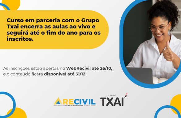 Inscrições prorrogadas até o dia 26/outubro pela Webrecivil As aulas ao vivo do curso com foco em gestão extrajudicial, promovido pelo Recivil em parceria com o Grupo Txai, foram concluídas no último sábado, 18 de outubro. A iniciativa, que teve início em 9 de agosto,...