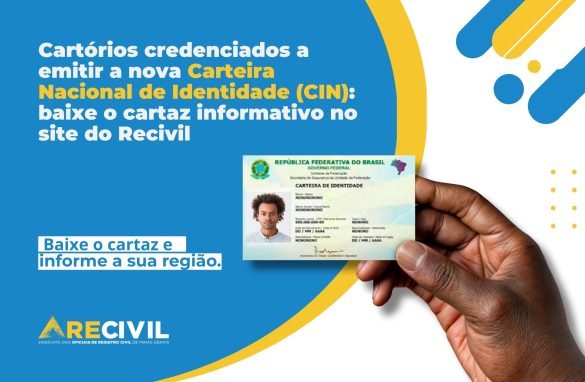 Cartórios credenciados: divulguem a emissão da nova identidade O cartaz informativo sobre a emissão da nova Carteira Nacional de Identidade (CIN) já está disponível no site do Recivil. Os cartórios credenciados podem utilizá-lo para informar a população de sua região sobre o serviço. Basta...
