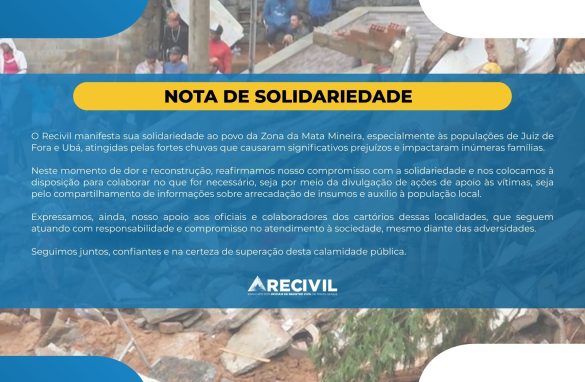 O Recivil manifesta sua solidariedade ao povo da Zona da Mata Mineira, especialmente às populações de Juiz de Fora e Ubá, atingidas pelas fortes chuvas que causaram significativos prejuízos e impactaram inúmeras famílias. Neste momento de dor e reconstrução, reafirmamos nosso compromisso com a solidariedade...