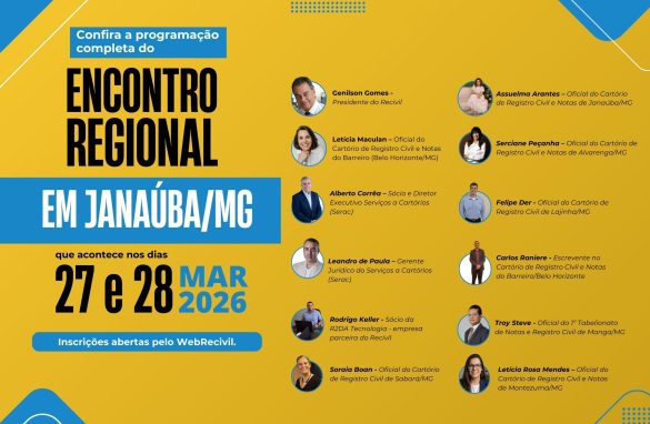 O Recivil convida os oficiais, prepostos e colaboradores do Registro Civil da região Norte de Minas a reservarem os dias 27 e 28 de março de 2026, quando será realizado o Encontro Regional, na cidade de Janaúba. O evento acontecerá no Gorutuba Park Hotel, localizado...