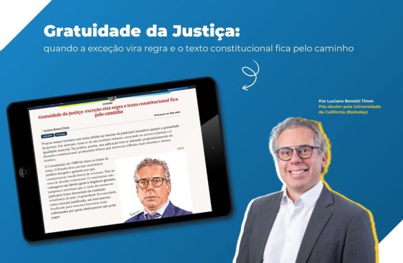 Em artigo publicado no portal Conjur (Consultor Jurídico), o jurista Luciano Benetti Timm alerta que a gratuidade da Justiça, prevista na Constituição de 1988 como benefício destinado a quem realmente não pode arcar com os custos processuais, tem se transformado, na prática, em regra geral....