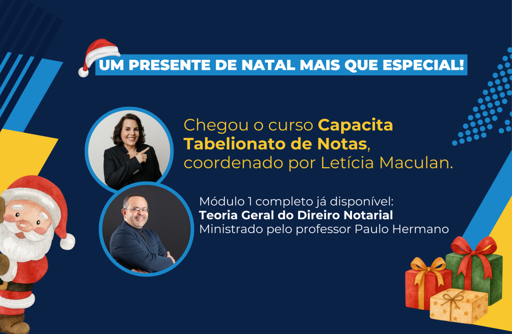 O Capacita Recivil amplia seu portfólio de formações e lança o Capacita Tabelionato de Notas, novo curso disponível na plataforma EAD da entidade. Gratuito e sob a coordenação de Letícia Maculan, o curso chega como um presente de Natal para a categoria e, ao mesmo tempo, como um convite estratégico para encerrar 2025 e iniciar 2026 com a formação profissional atualizada, alinhada às exigências normativas e aos desafios contemporâneos da atividade notarial.