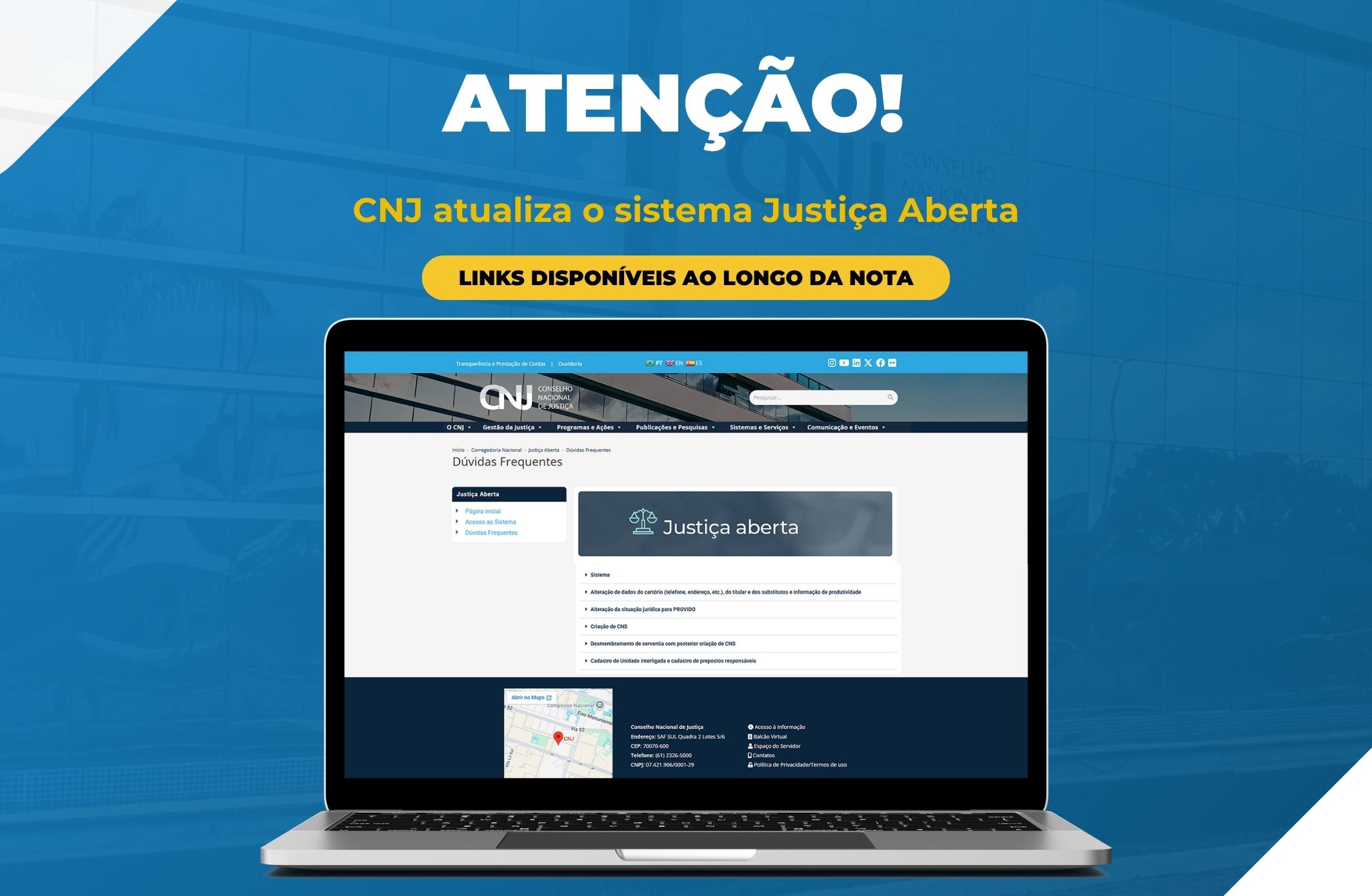 Informamos que foi realizada uma atualização no sistema Justiça Aberta, do Conselho Nacional de Justiça (CNJ), com o objetivo de aprimorar o funcionamento da plataforma e o atendimento aos usuários.