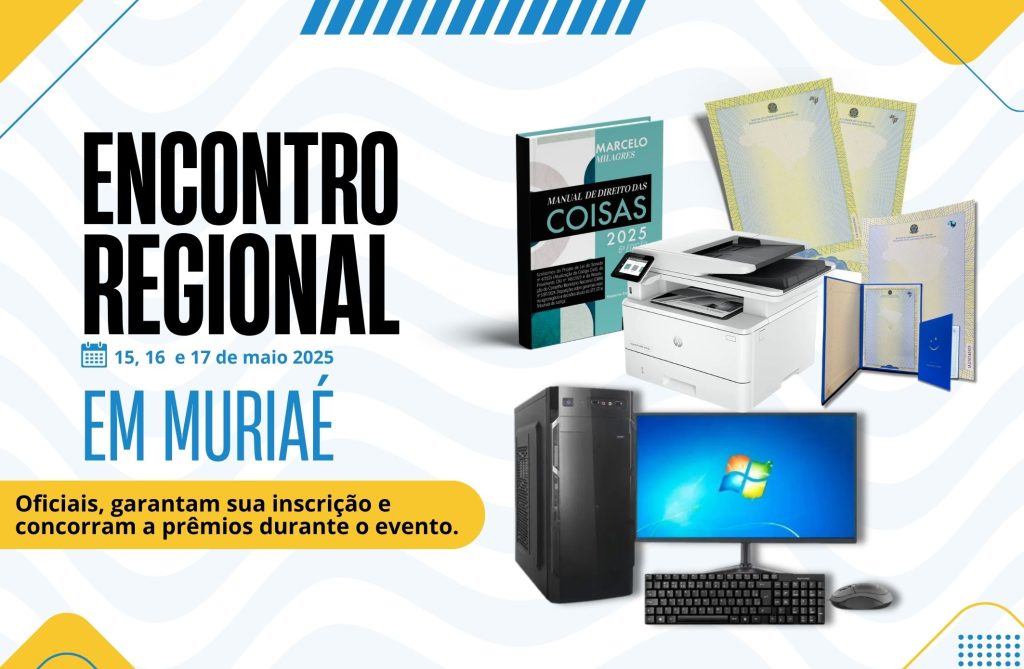 Nos dias 15, 16 e 17 de maio, Muriaé/MG será sede do Encontro Regional do Recivil da Zona da Mata, reunindo oficiais do Registro Civil em uma programação voltada ao fortalecimento das atividades das serventias.