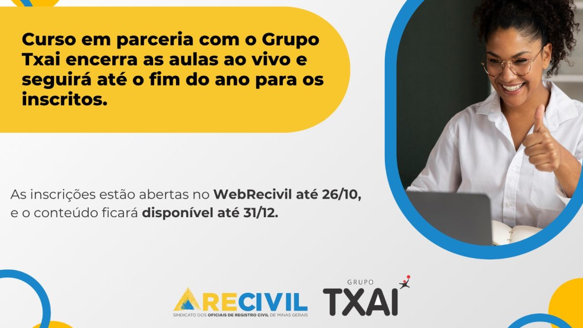 Inscrições prorrogadas até o dia 26/outubro pela Webrecivil As aulas ao vivo do curso com foco em gestão extrajudicial, promovido pelo Recivil em parceria com o Grupo Txai, foram concluídas no último sábado, 18 de outubro. A iniciativa, que teve início em 9 de agosto,…