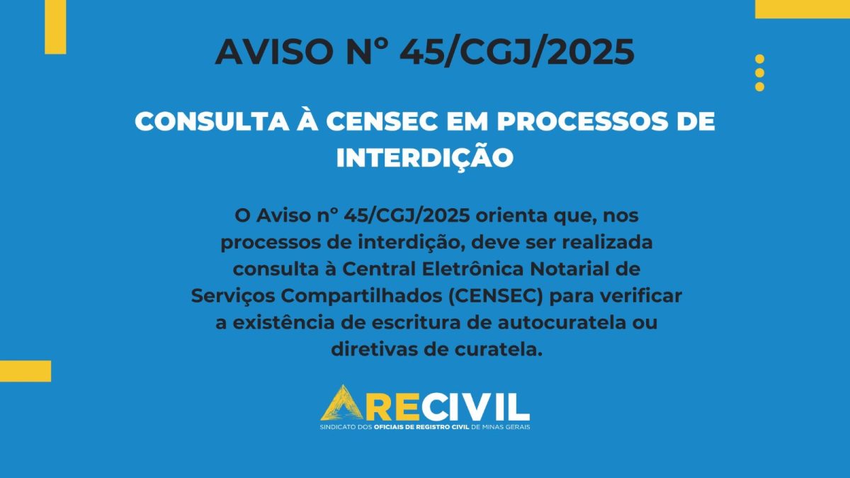 Aviso Nº 45/CGJ/2025: orientações sobre interdições e CENSEC