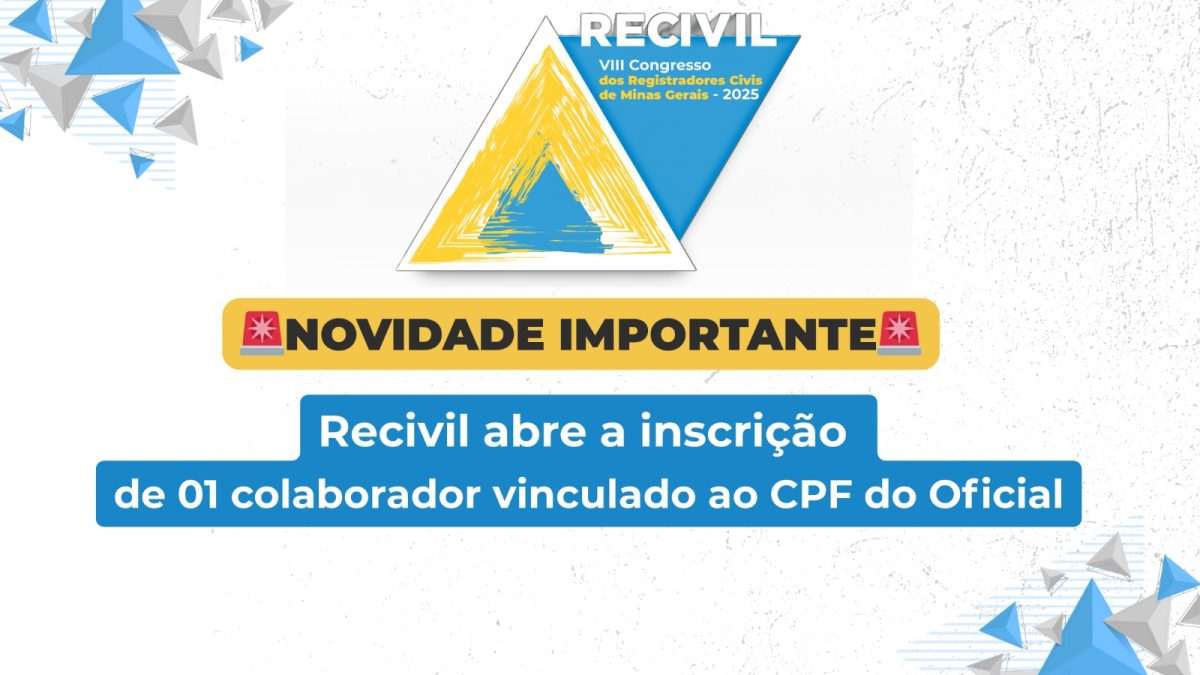 Atendendo a diversas solicitações, o Recivil anuncia a abertura de novas vagas para participação no VIII Congresso dos Registradores Civis de Minas Gerais, que será realizado nos dias 5 e 6 de dezembro, em Belo Horizonte. A partir de agora, além do(a) Oficial, estará autorizada…