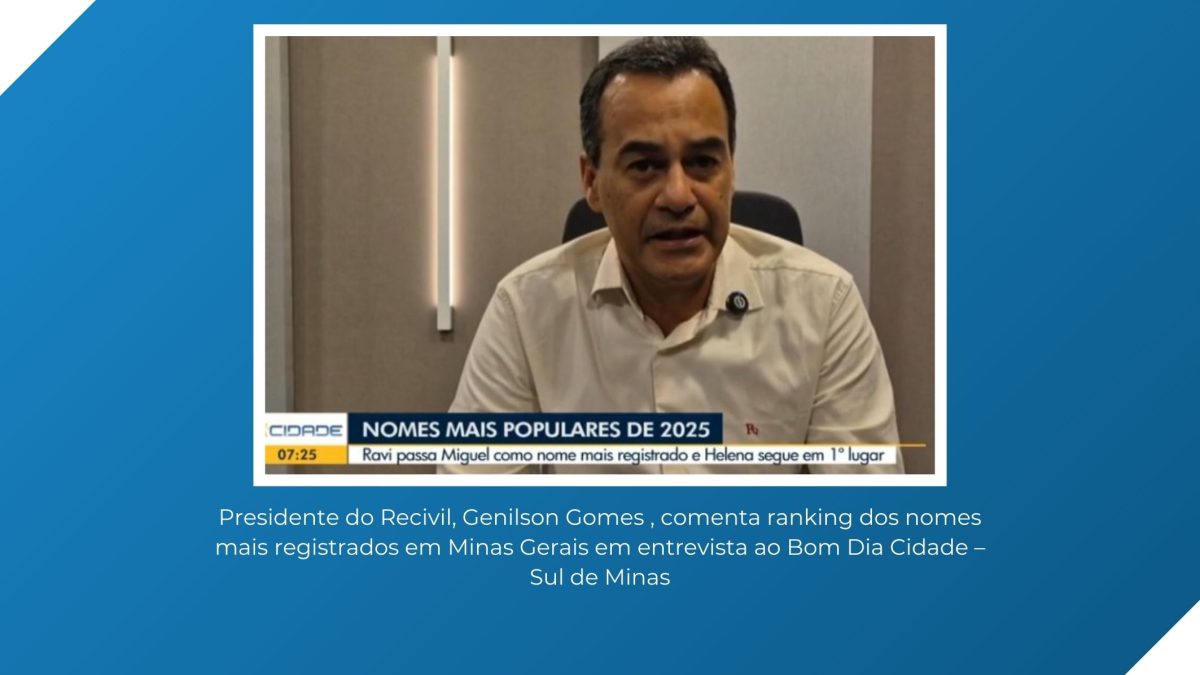 O presidente do Recivil, Genilson Gomes, concedeu entrevista ao telejornal Bom Dia Cidade – Sul de Minas, exibida nesta terça-feira (31 de dezembro), para comentar os dados consolidados sobre os nomes mais registrados em Minas Gerais ao longo de 2025. A reportagem destacou a liderança…