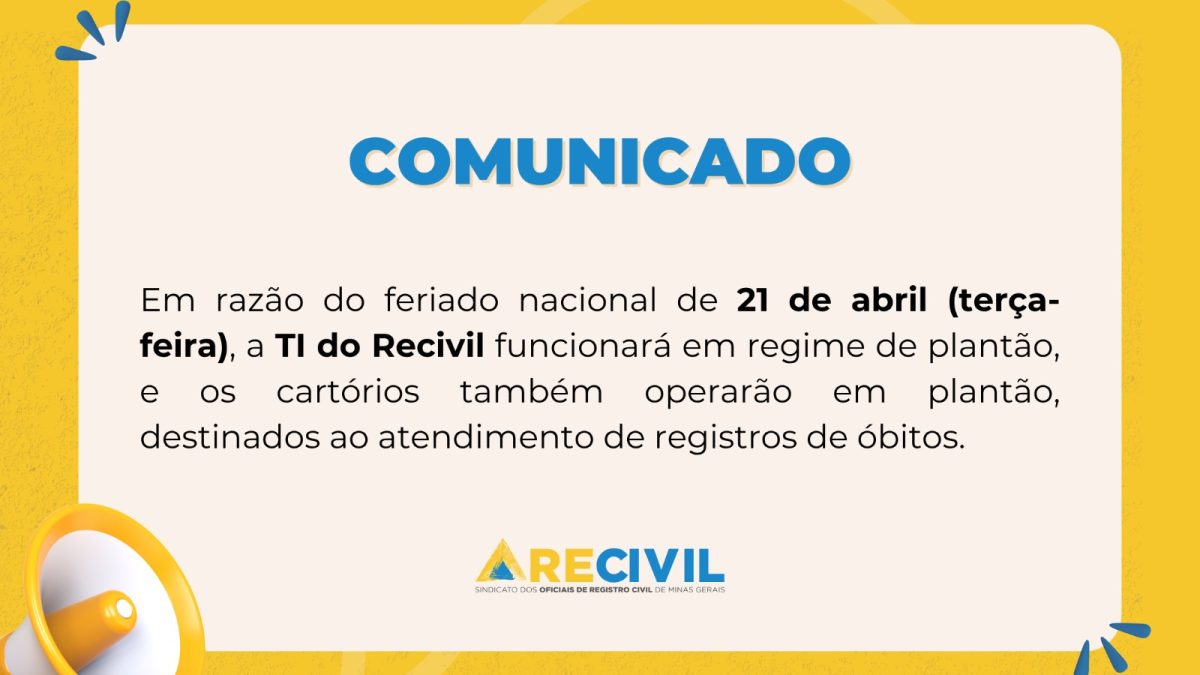 Estão abertas as inscrições para o Encontro Regional do Recivil em Muriaé, que será realizado nos dias 15,16 e 17 de maio, no Hotel Gran Premium Plaza, localizado na Avenida Constantino Pinto, 180. A iniciativa é voltada aos oficiais de registro civil da Zona da…
