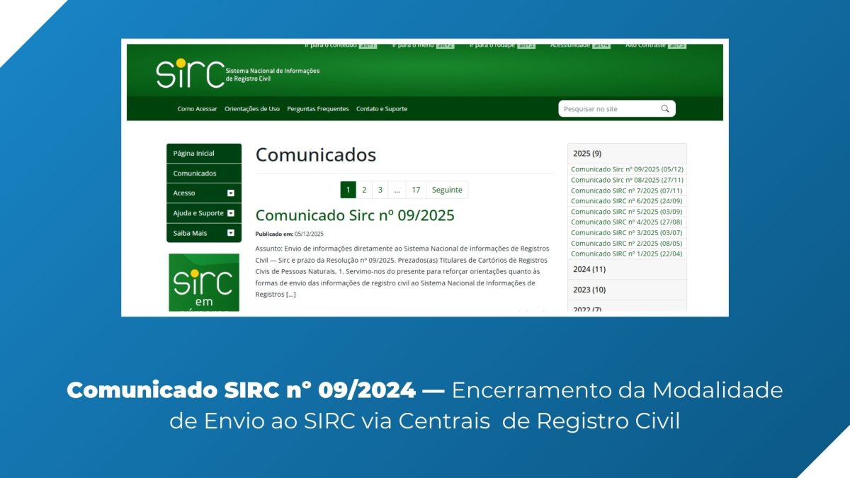 Comunicado SIRC nº 09/2024 orienta cartórios sobre envio individualizado ao SIRC