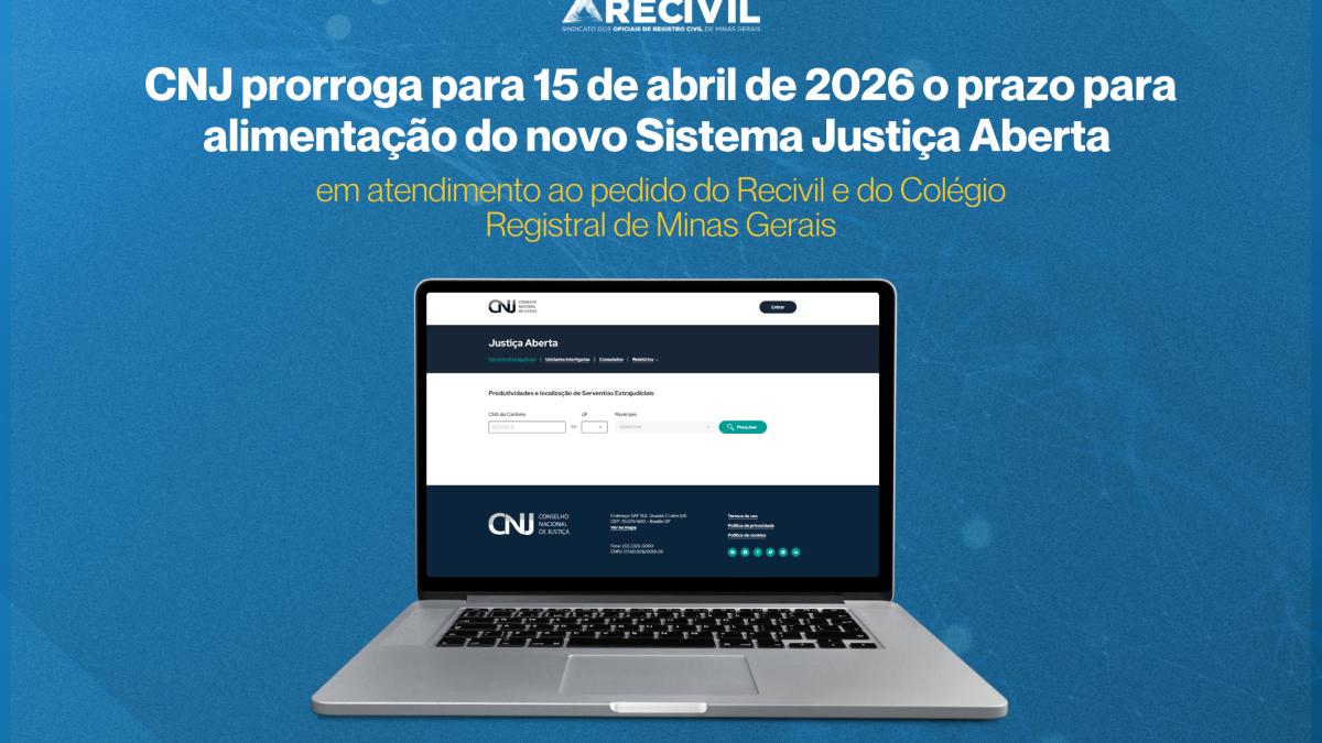 Em atendimento ao pedido do Recivil e do Colégio Registral de Minas Gerais, a Corregedoria Nacional de Justiça prorrogou excepcionalmente para o dia 15 de abril de 2026 o prazo para que notários e registradores alimentem o Sistema Justiça Aberta com dados de arrecadação e…
