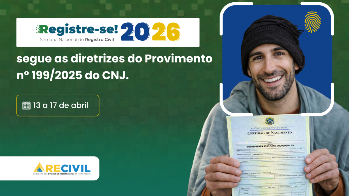 Registre-se: a Semana Nacional do Registro Civil, que acontecerá de 13 a 17 de abril, segue as diretrizes do Provimento nº 199/2025 do CNJ