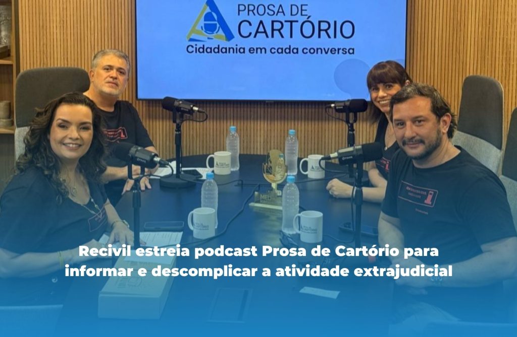 Para ampliar esse diálogo com a sociedade e mostrar o papel social dos notários e registradores, o Recivil lançou, na noite desta terça-feira, 18 de novembro, o podcast Prosa de Cartório. A estreia, transmitida ao vivo pelo YouTube, aconteceu em uma data simbólica: o Dia Nacional do Notário e Registrador, reforçando o compromisso da entidade em valorizar a classe e aproximá-la do público.