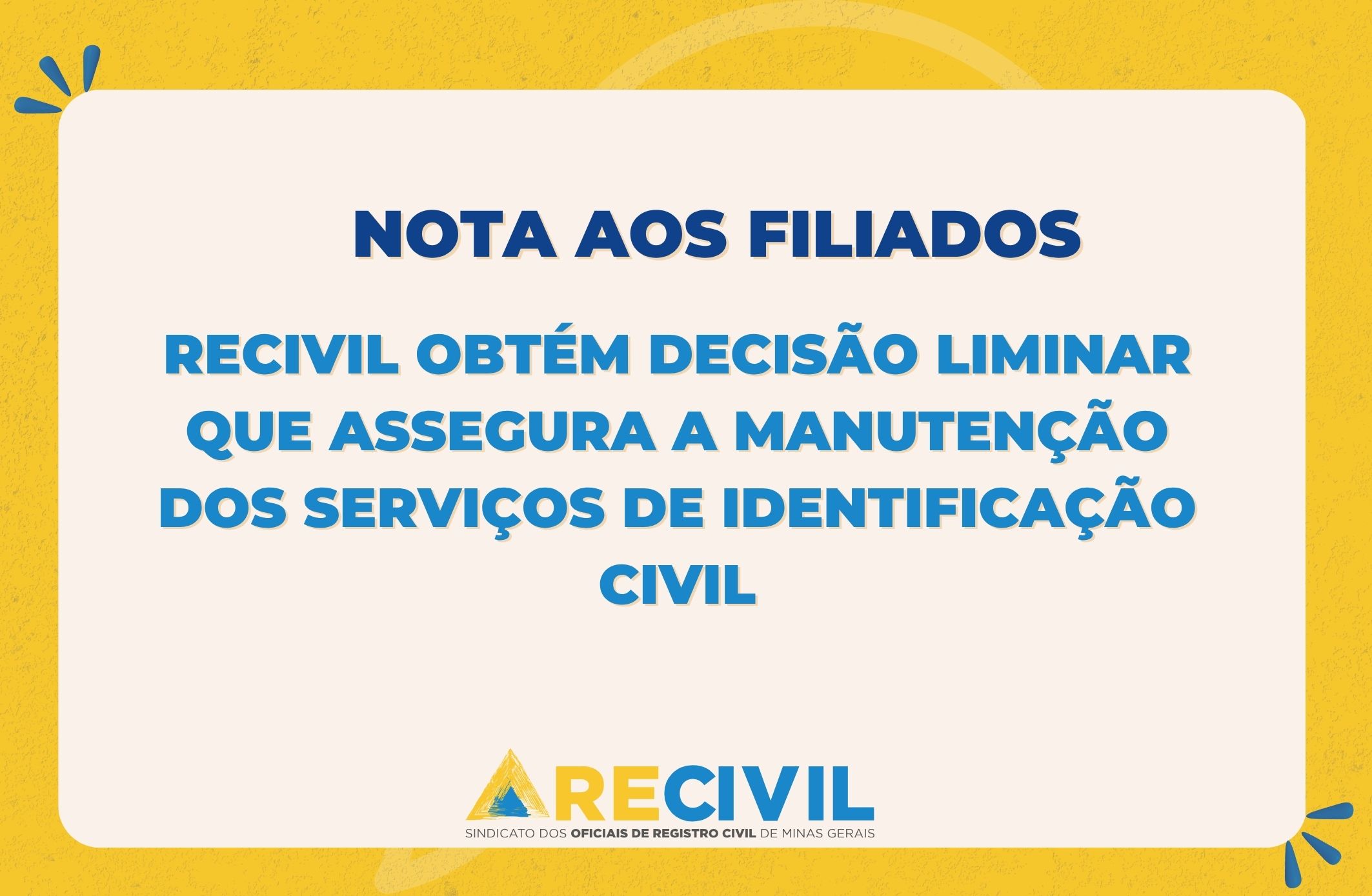 O RECIVIL informa aos seus filiados que, em razão de recentes comunicações encaminhadas pela empresa VALID Soluções S.A. acerca das condições contratuais relacionadas à licença de software utilizada na emissão de carteiras de identidade, foi ajuizada ação judicial pelo Departamento Jurídico do Sindicato, com o objetivo de assegurar a adequada continuidade dos serviços e a estabilidade das condições inicialmente contratadas.